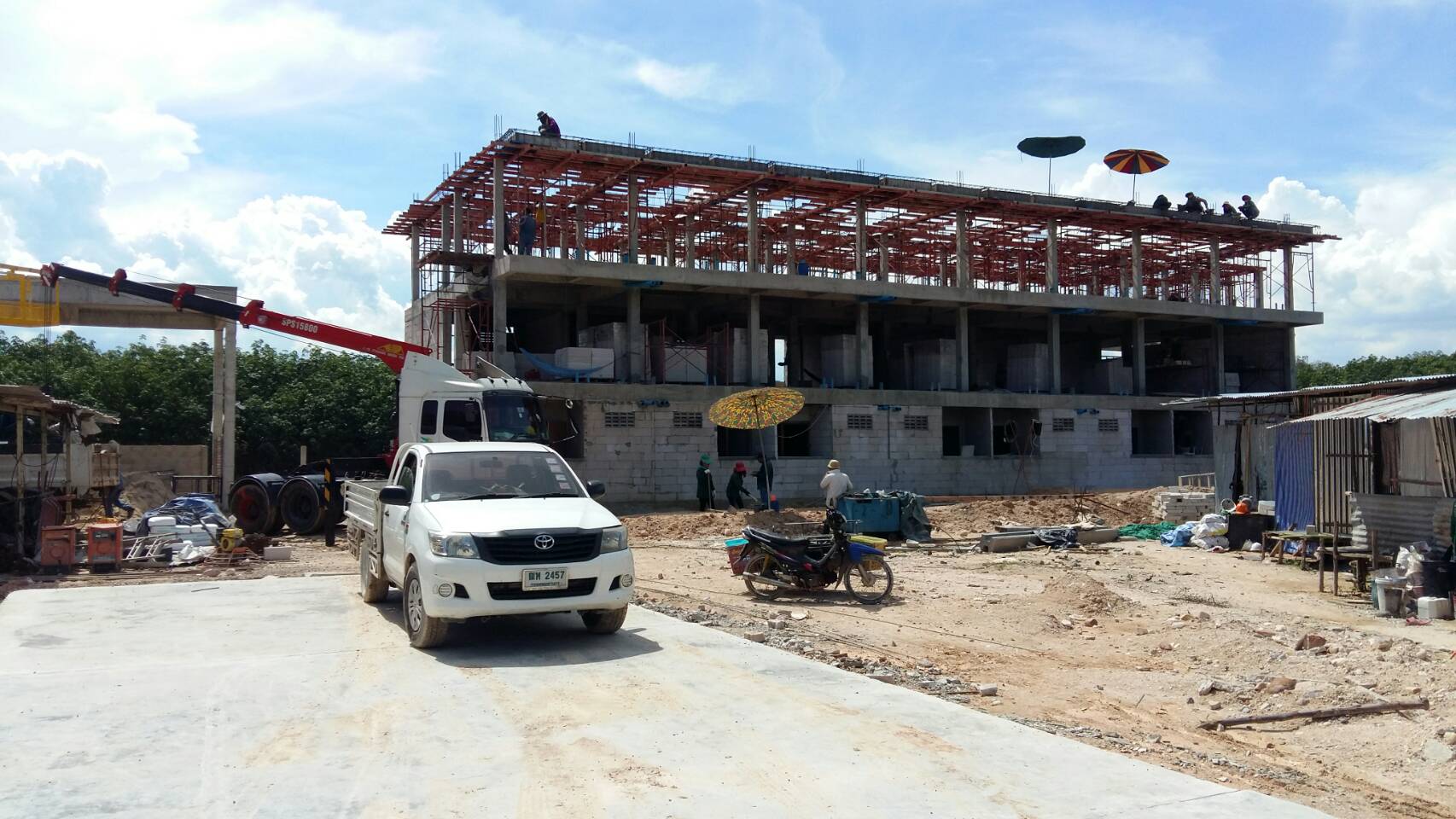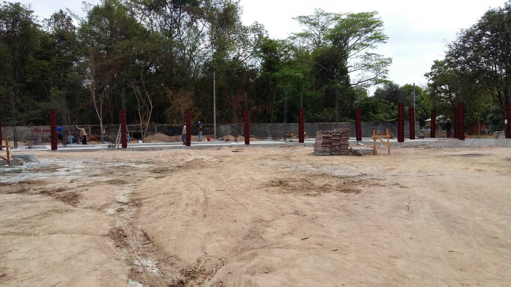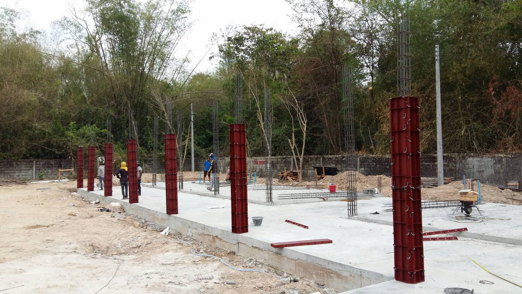 The construction of the house for our client at Prachinburi, continues to go very well. Currently 3 weeks ahead of schedule. Ground slab works are completed and moving ahead with preparation on the 1st floor column work. All steel rebar is on site.