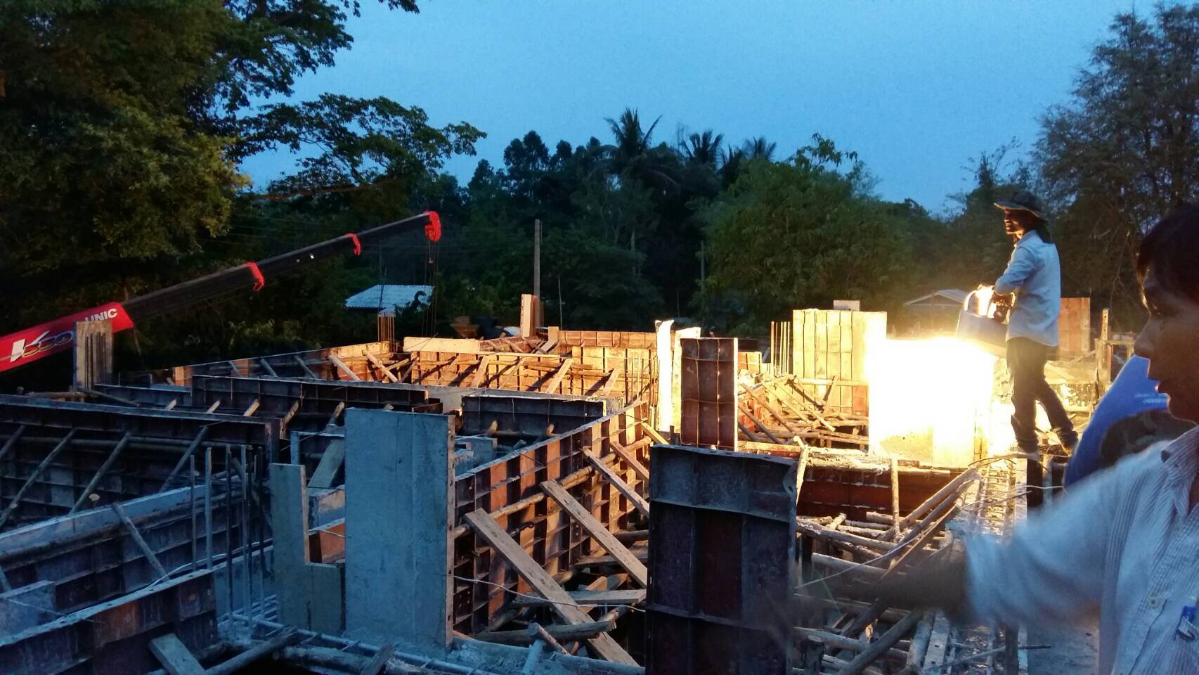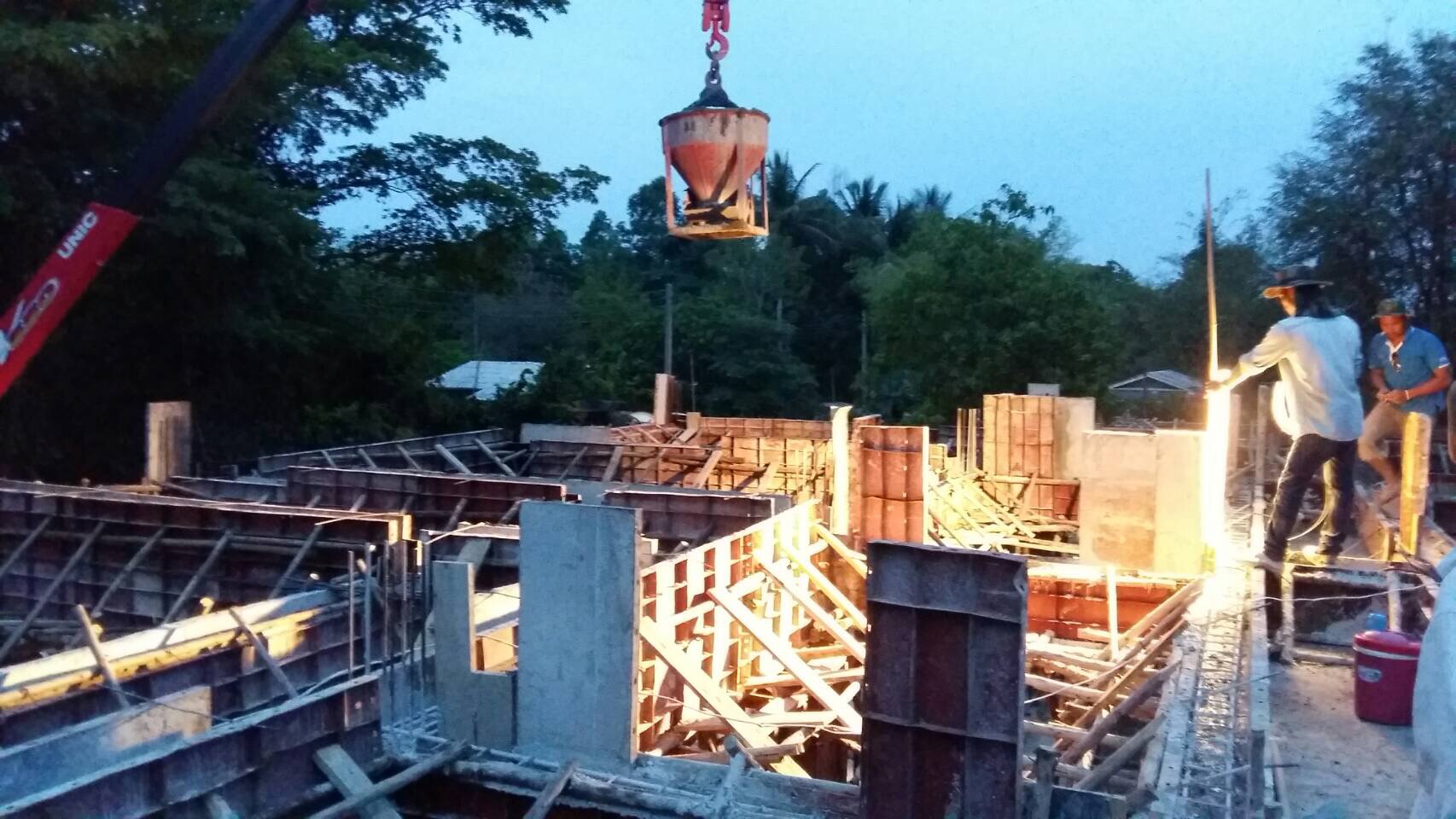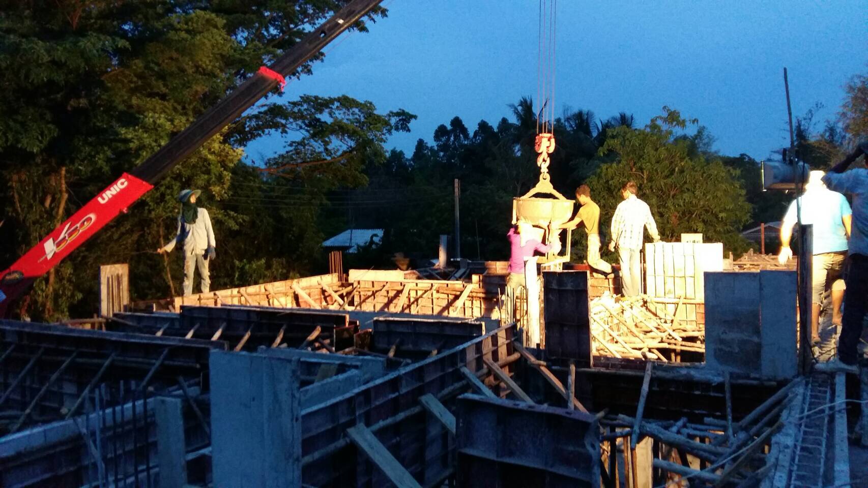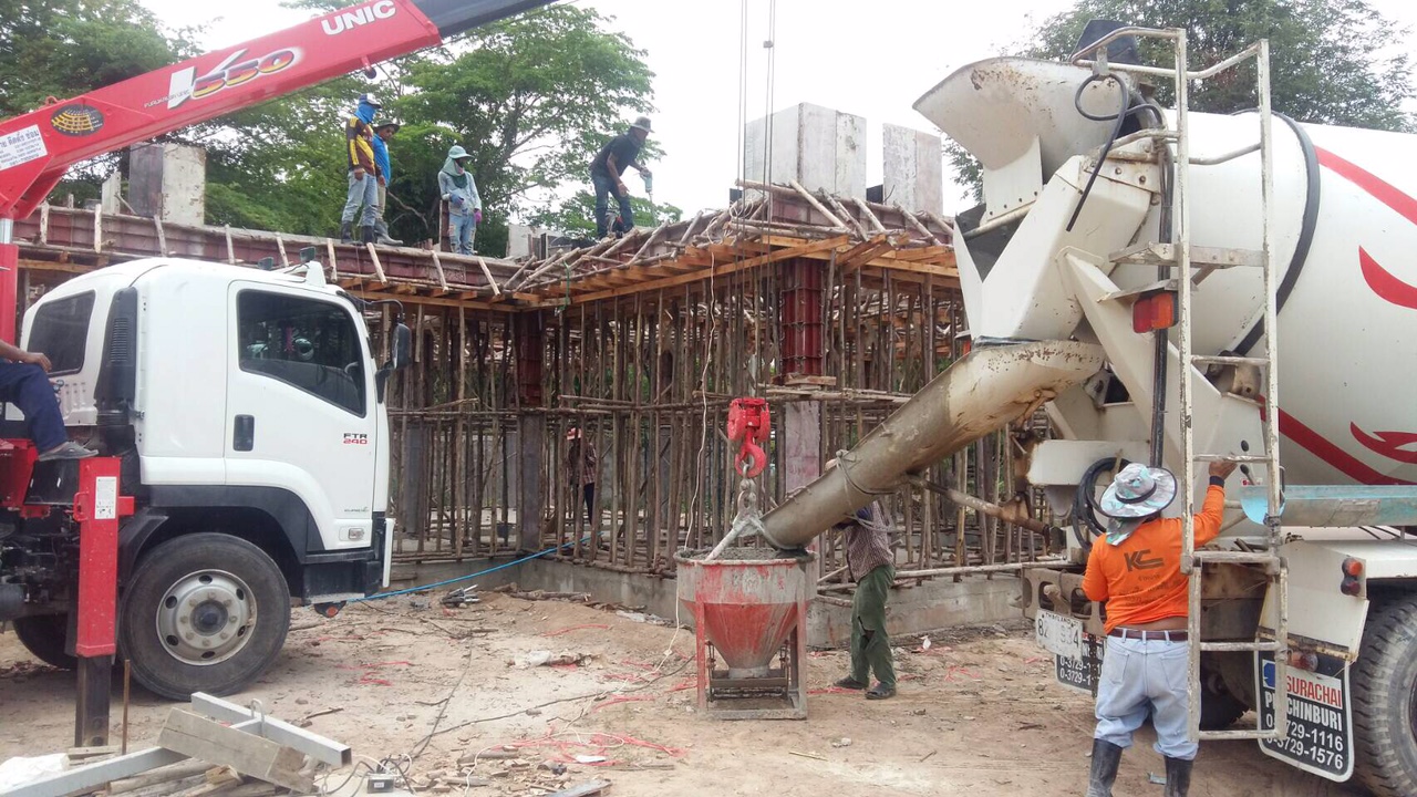 Latest Update on Bangkok Builder’s House Construction in Prachinburi, Thailand: Wonderful to see such enthusiasm from the construction team to get the project stages completed before the Songkhran holiday. They worked hard all through the day and late into the evening to assure the 2nd beam concrete pour was finished and we can move on to the next stages before the holiday, when companies shut down. We are currently 4 weeks ahead of schedule and  have a very happy customer.  Thanks to all the building team for their hard work and dedication to the construction project.