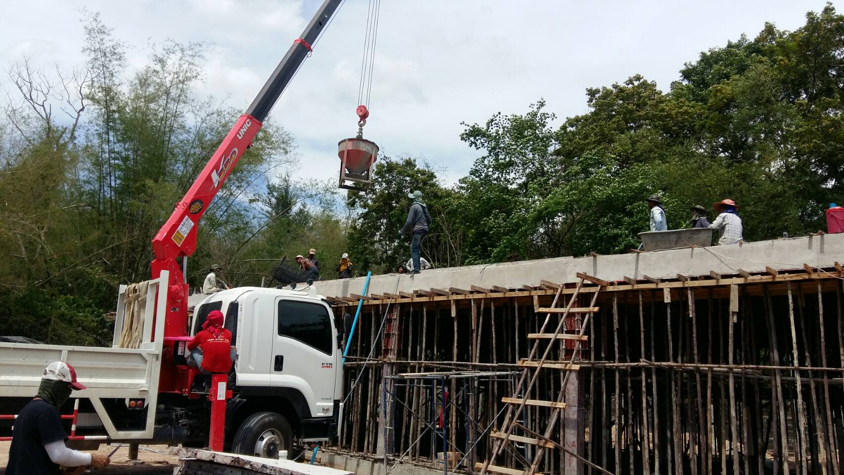 Work continues on the clients house construction at Prachinburi. Now 4 weeks ahead of schedule. Pouring of concrete for 2nd floor. Bangkok Builder’s teams checks all concrete certification, carry out tests and makes sure all is correct. Client is very happy.